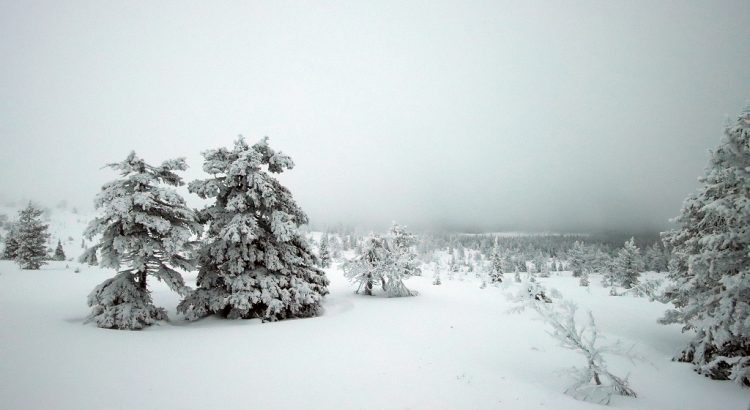 Nichtsdestotrotz gefiel uns die märchenhafte Umgebung, denn die meisten Bäume waren vom Schnee und Frost der letzten Tage in ein weißes Kleid gehüllt. Nur nicht so stark, dass sie sich unter der Last des Schnees bogen und bizarre Skulpturen bildeten.