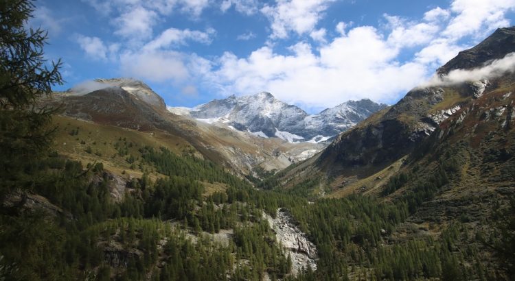 Immer wieder konnten wir durch Baumlücken einen fantastischen Blick auf die Bergkette mit den Viertausendern werfen.