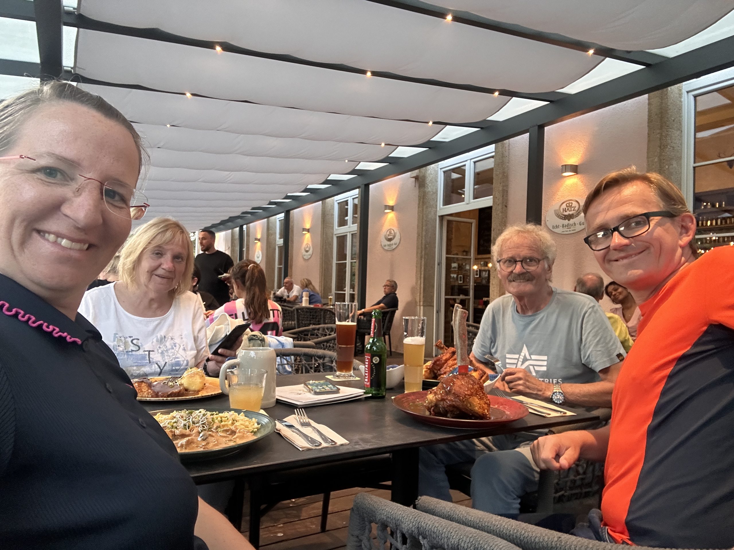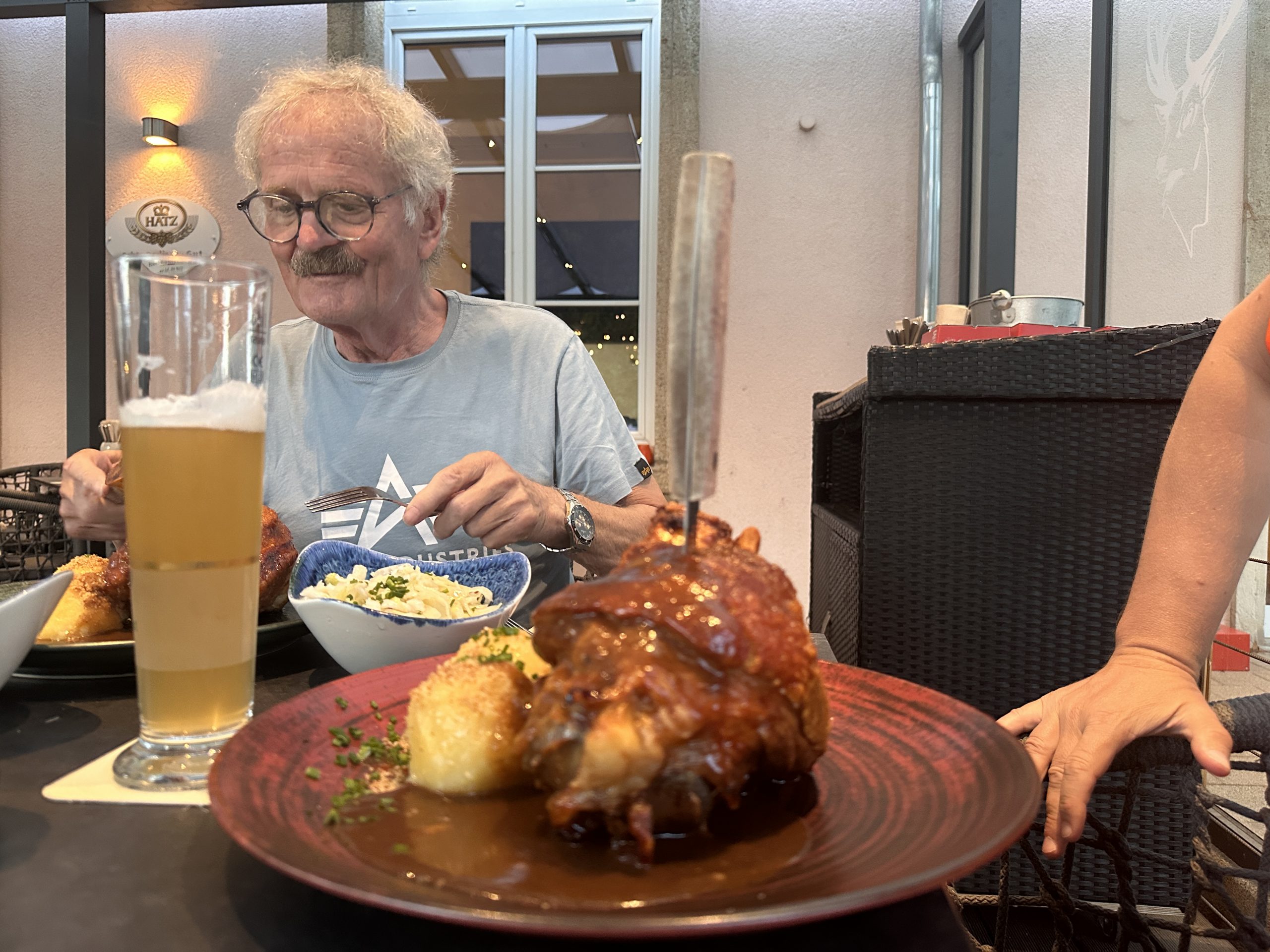 Bekannt ist das Restaurant für seine leckere Schweinshaxe, die Günter und Marcel an den Rand des Platzens brachte. Ganz schön groß die Portion. Das Essen war lecker und der Service wirklich top. Unser Kellner war sehr freundlich und aufmerksam. Selten auf so einen herzlichen Menschen in einem Restaurant getroffen. Und er kannte sich mit den Speisen bestens aus. Von uns gibt es daher eine klare Empfehlung.