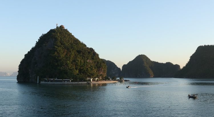 Der Anbruch des Tages kündigte sich an und wir sahen, wie viele Boote in der Halongbucht ankerten. Wirklich verrückt, wie viele Touristen sich hier gleichzeitig aufhielten. Wir waren daher gespannt, wie voll es auf der Ti Top Insel werden würde.